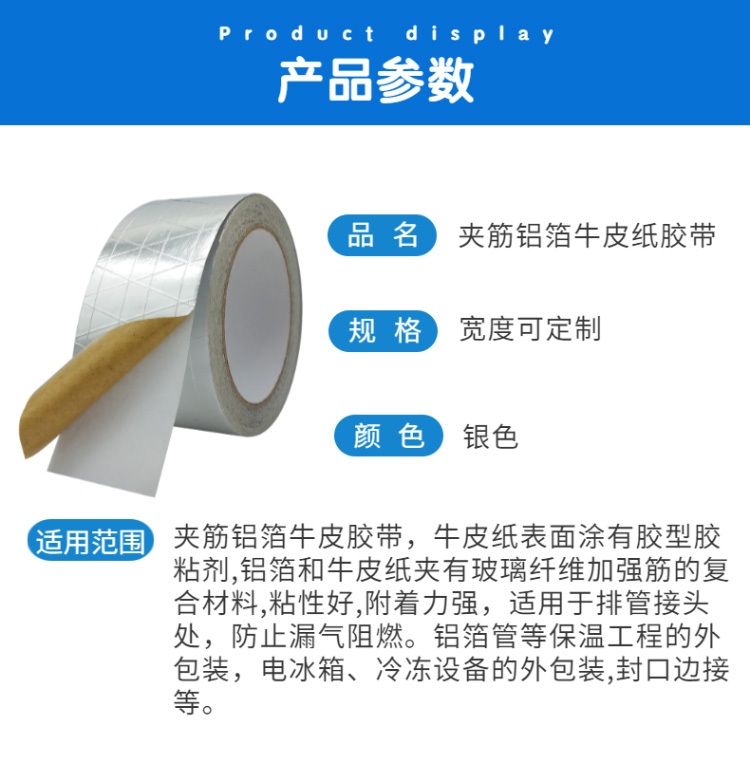 - 由鋁箔復(fù)合雙向或三向玻纖網(wǎng)格和牛皮紙制成,是最常用的管道隔熱的包扎貼面,也適用于其它蒸汽設(shè)備的隔熱應(yīng)用,也因為它的低反射率而成為防輻射應(yīng)用的理想選擇。