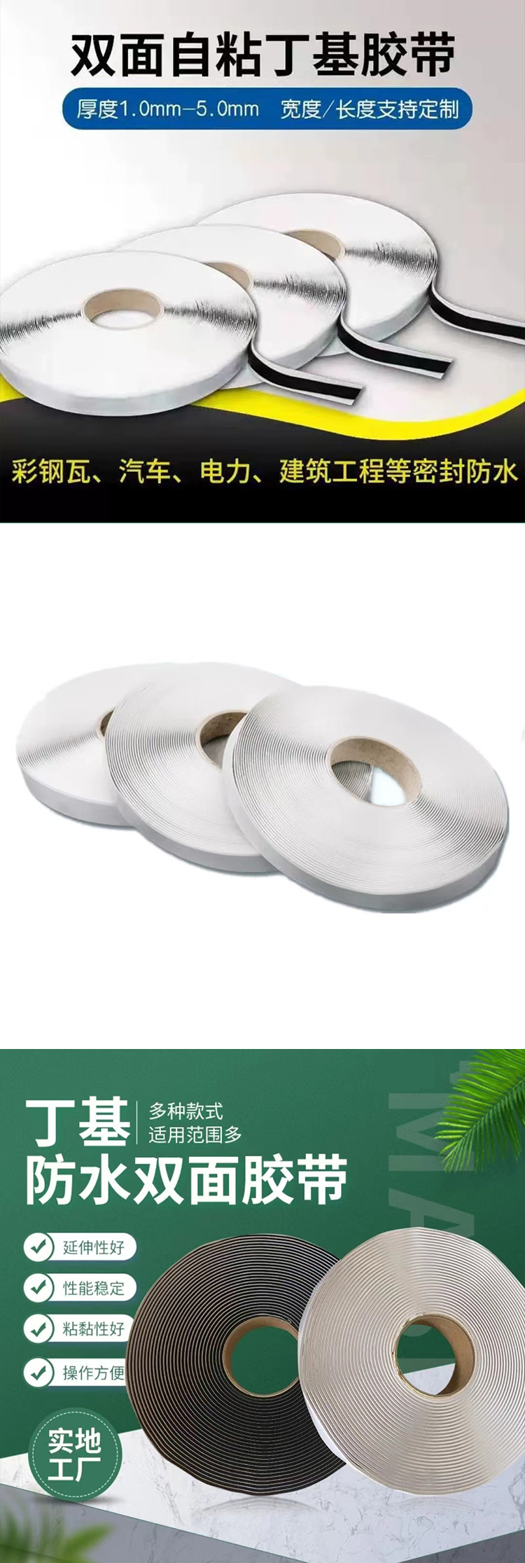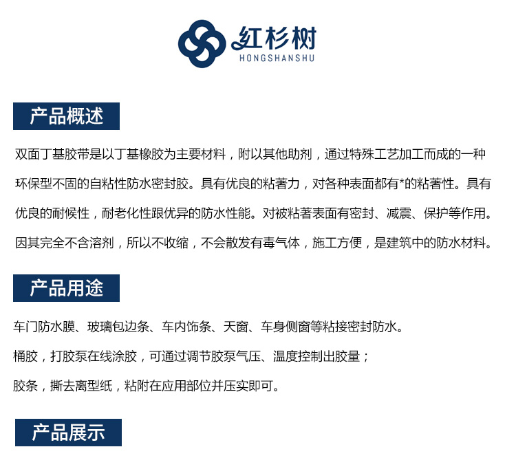 - 雙面丁基膠帶是以丁基橡膠為主要材料,附以其他助劑,通過(guò)特殊工藝加工而成的一種環(huán)保型不固的自粘性防水密封膠。具有優(yōu)良的粘著力,對(duì)各種表面都有*的粘著性。具有優(yōu)良的耐候性,耐老化性跟優(yōu)異的防水性能。對(duì)被粘著表面有密封、減震、保護(hù)等作用。因其完全不含溶劑,所以不收縮,不會(huì)散發(fā)有毒氣體,施工方便,是建筑中的防水材料。